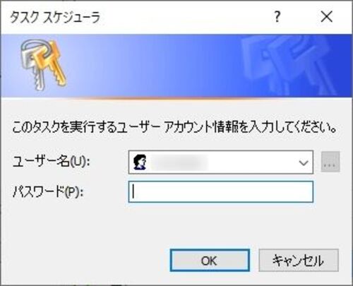 タスクスケジューラの設定を修正する時に「このタスクを実行するユーザーアカウント情報を入力してください」と認証画面が出る時の対処法について。